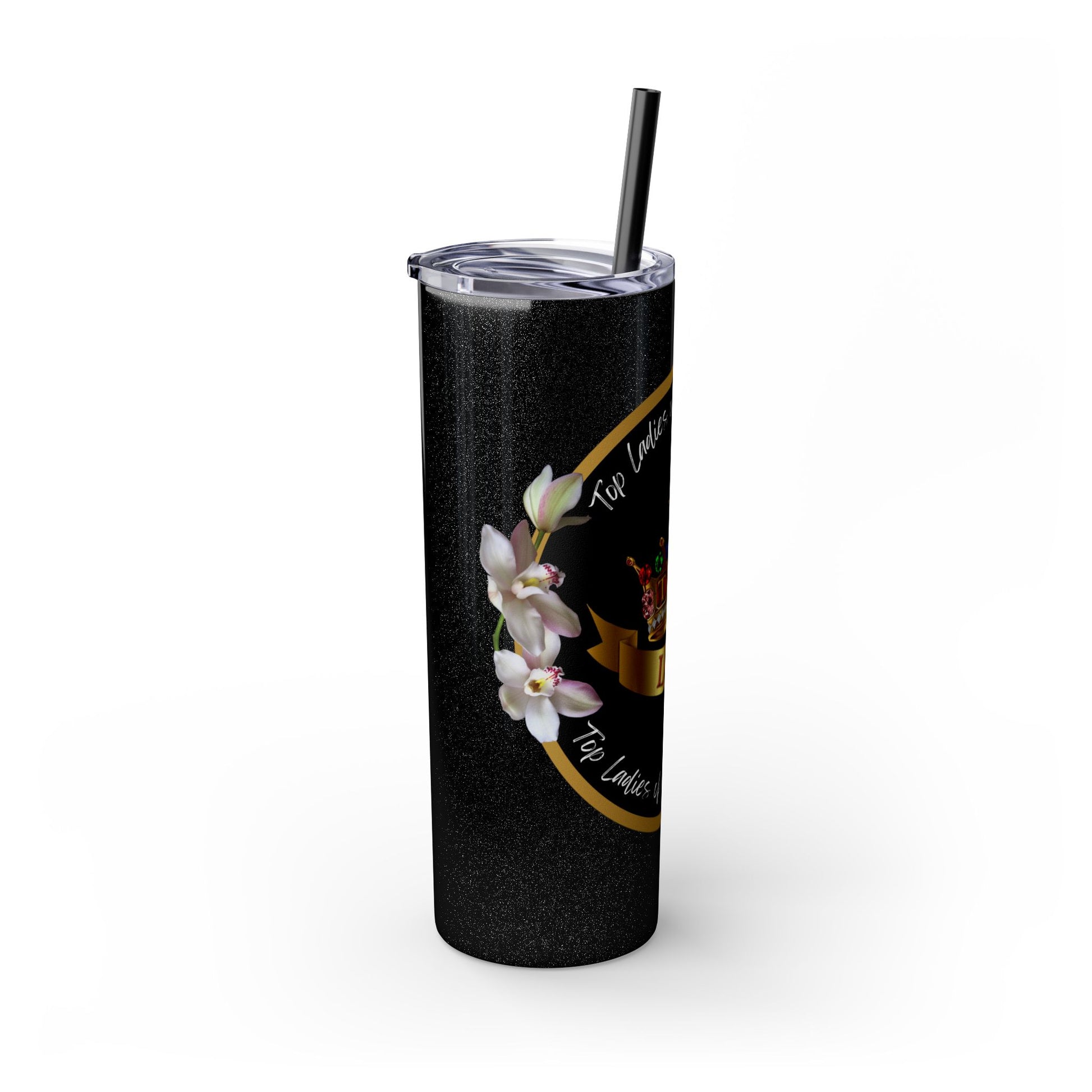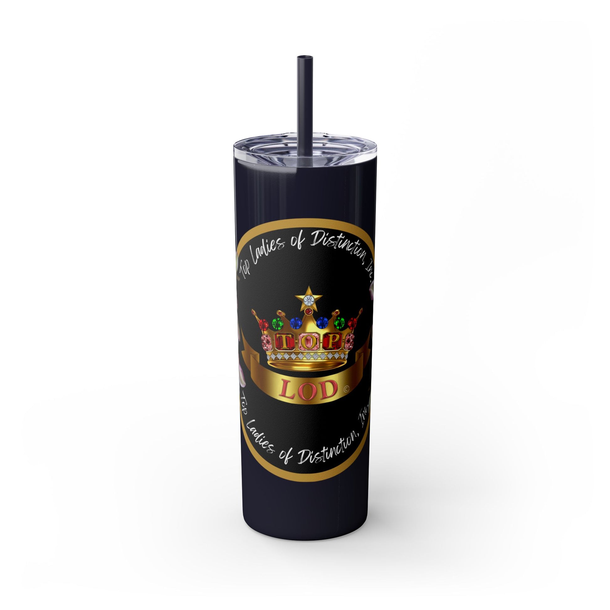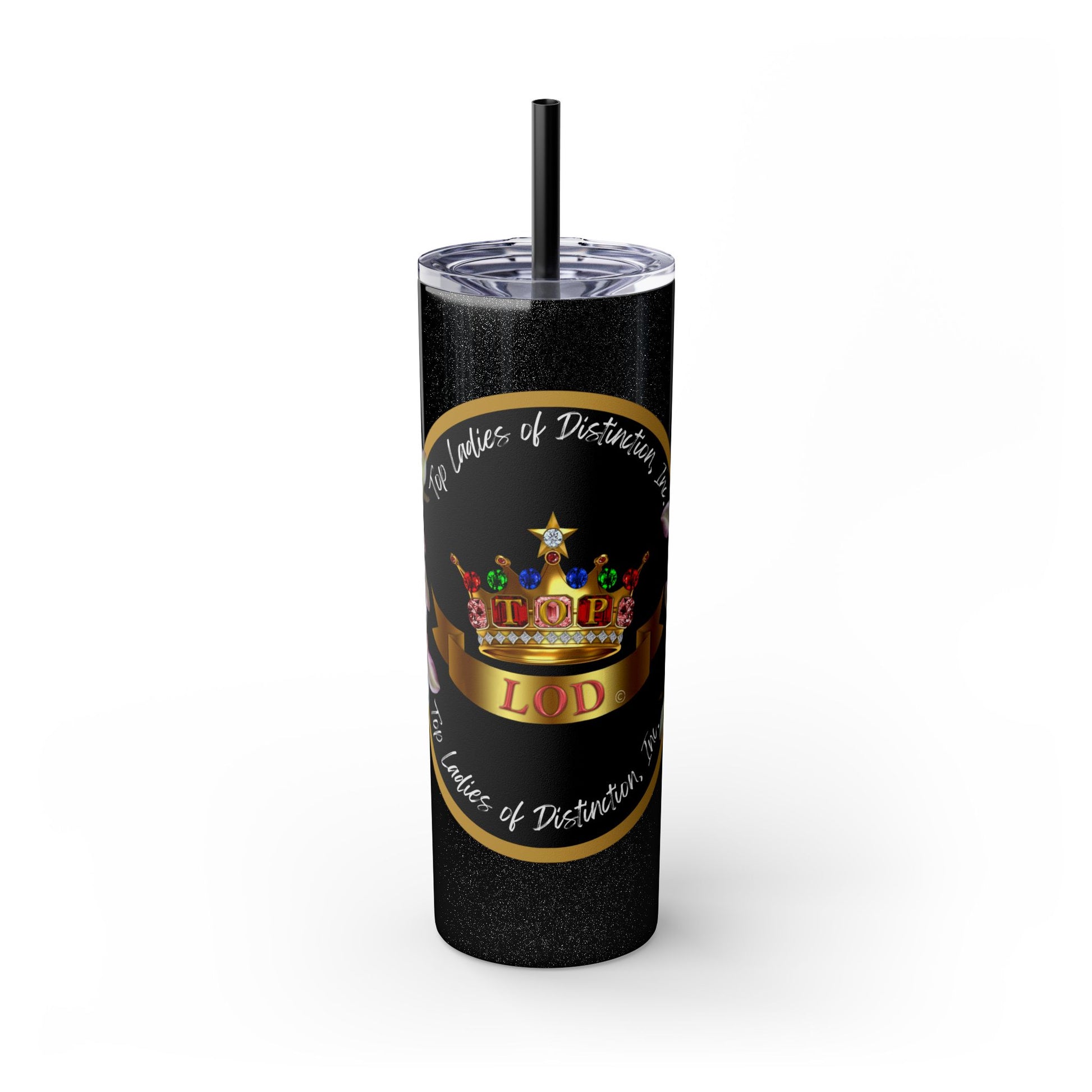 Elevate your hydration game with this stunning Top Ladies of Distinction (TLOD) Tumbler. Designed for style and functionality, this premium tumbler features a vibrant crown design adorned with colorful jewels, symbolizing elegance and empowerment. The sleek black background, accented with golden tones and glitter details, exudes sophistication and prestige.